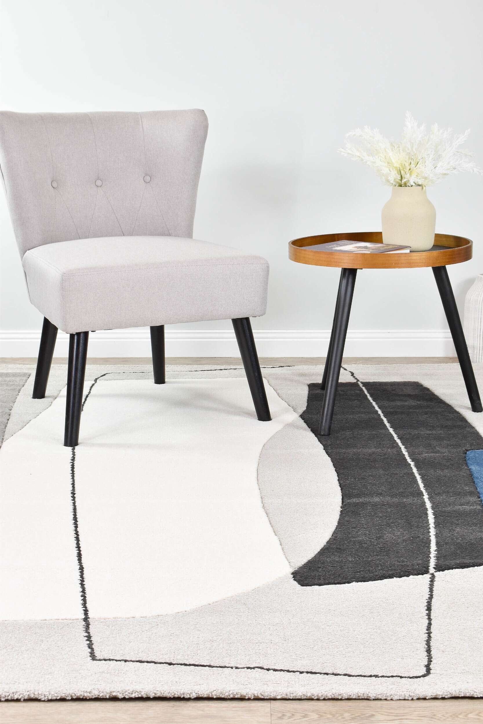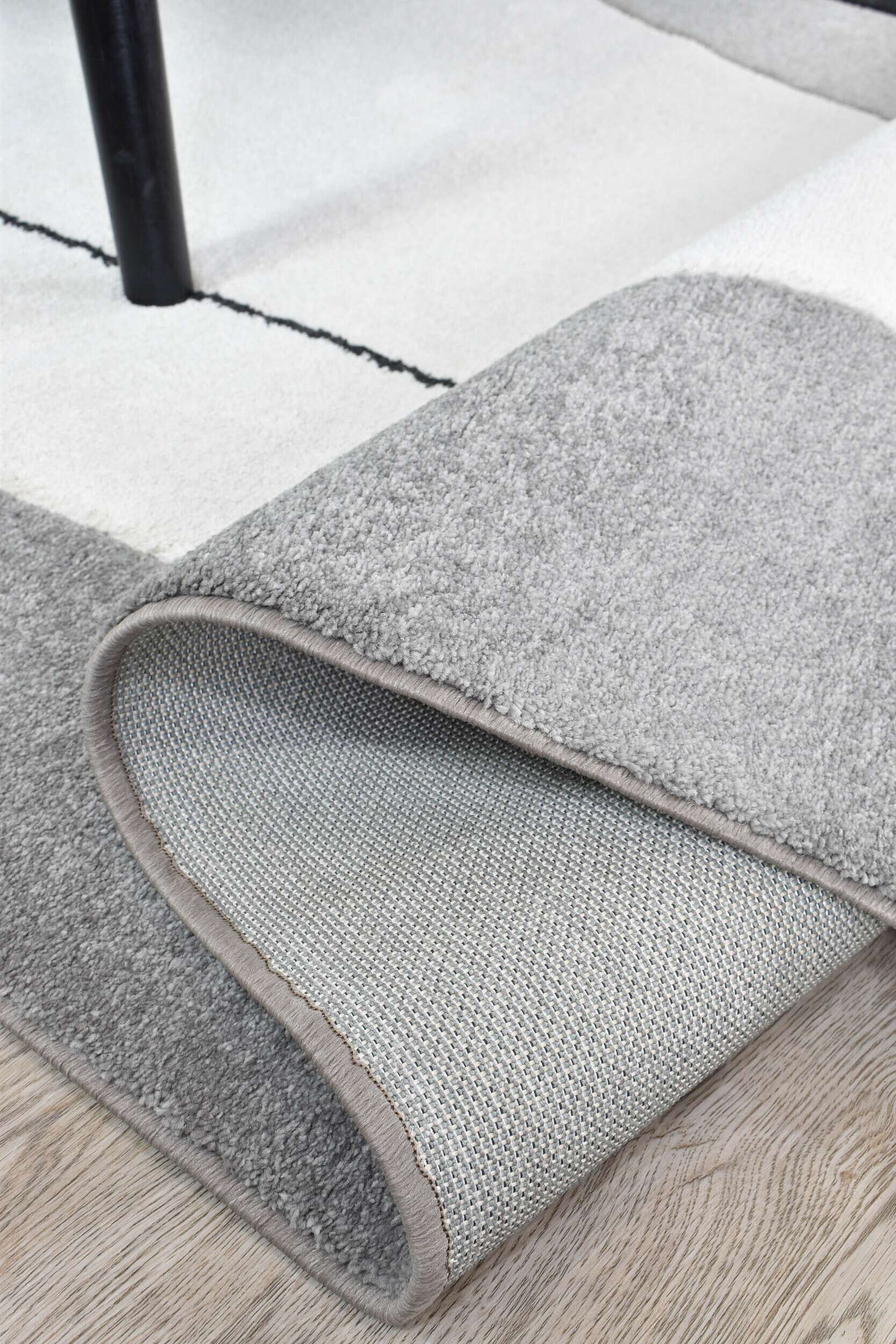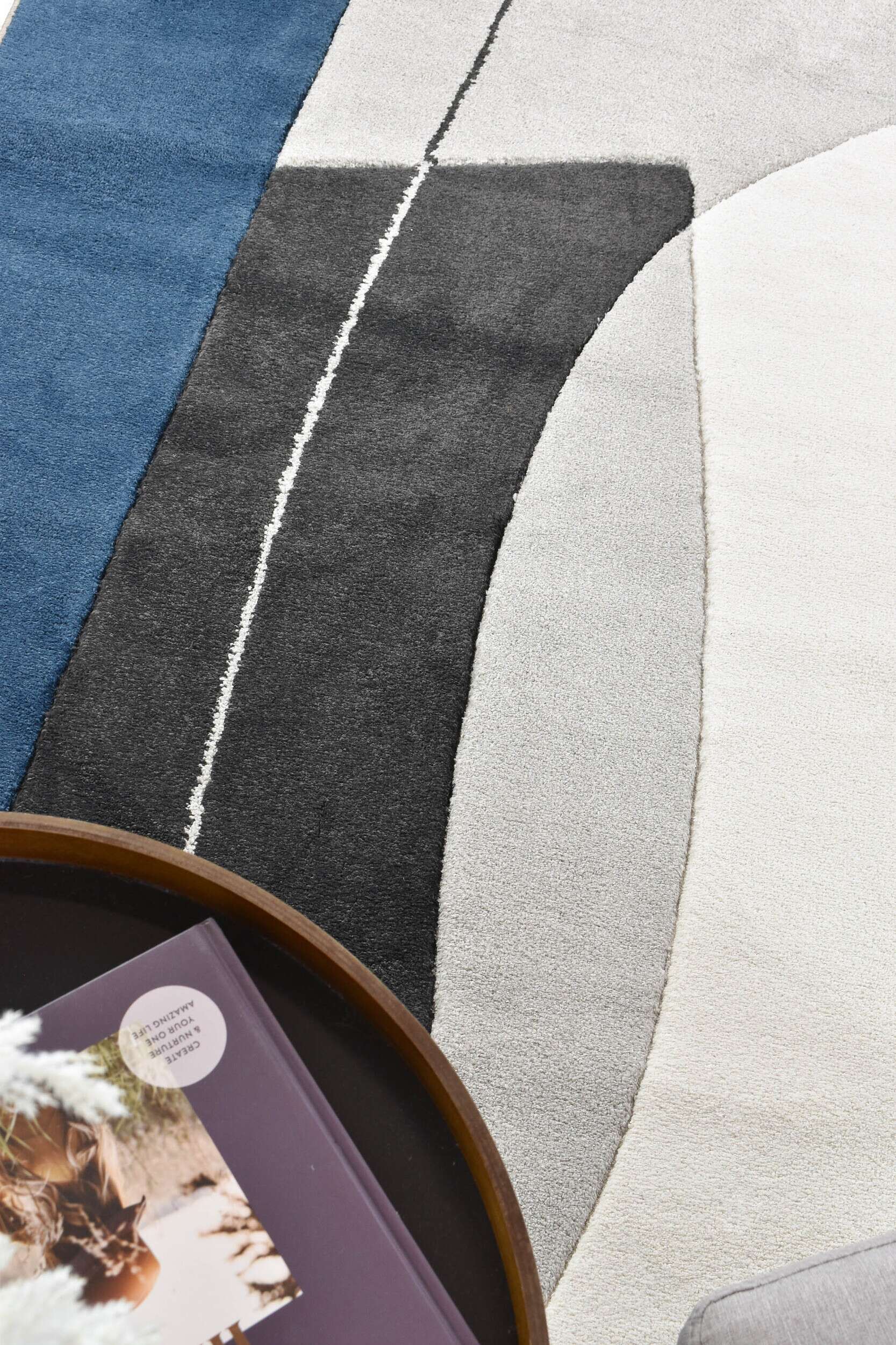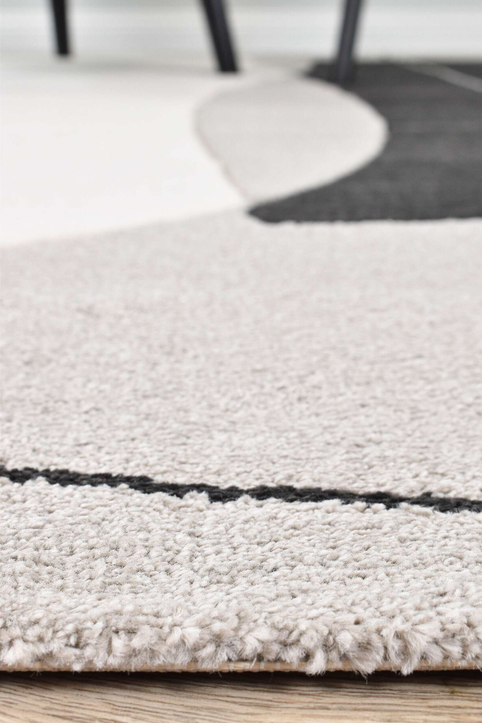 Smooth, carved rugs in graphic, trend-forward designs, combining neutral