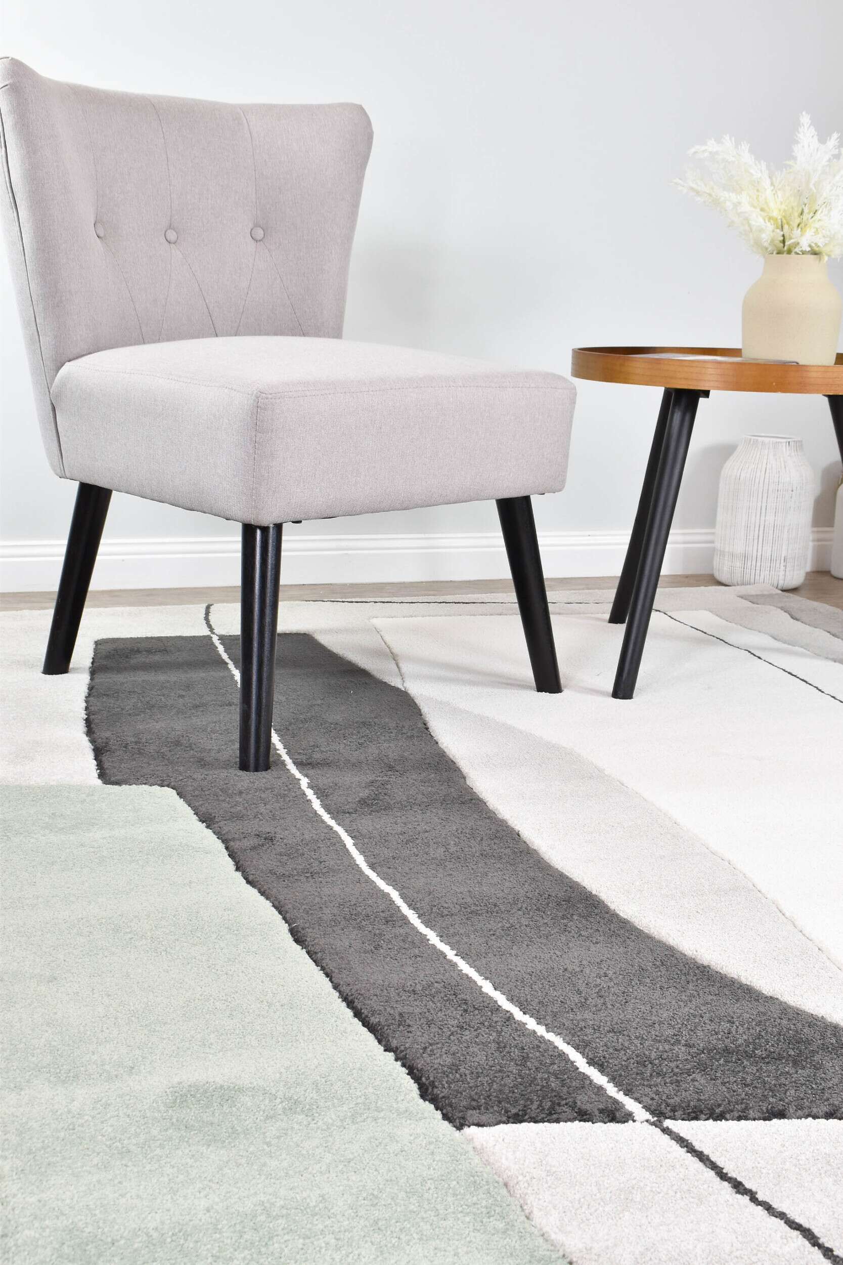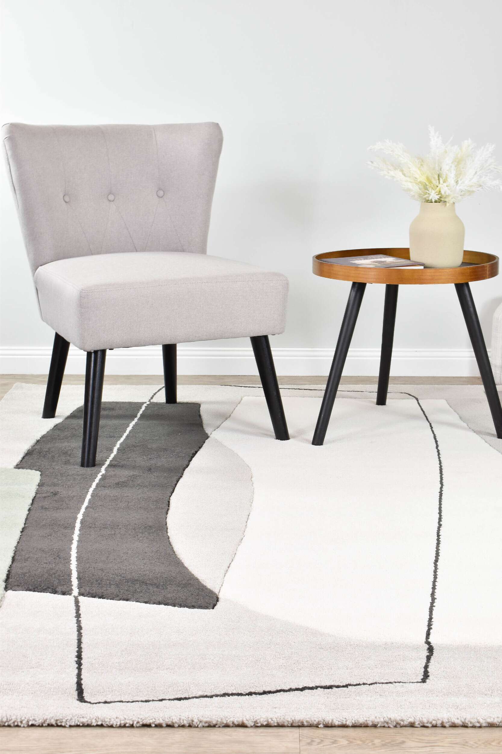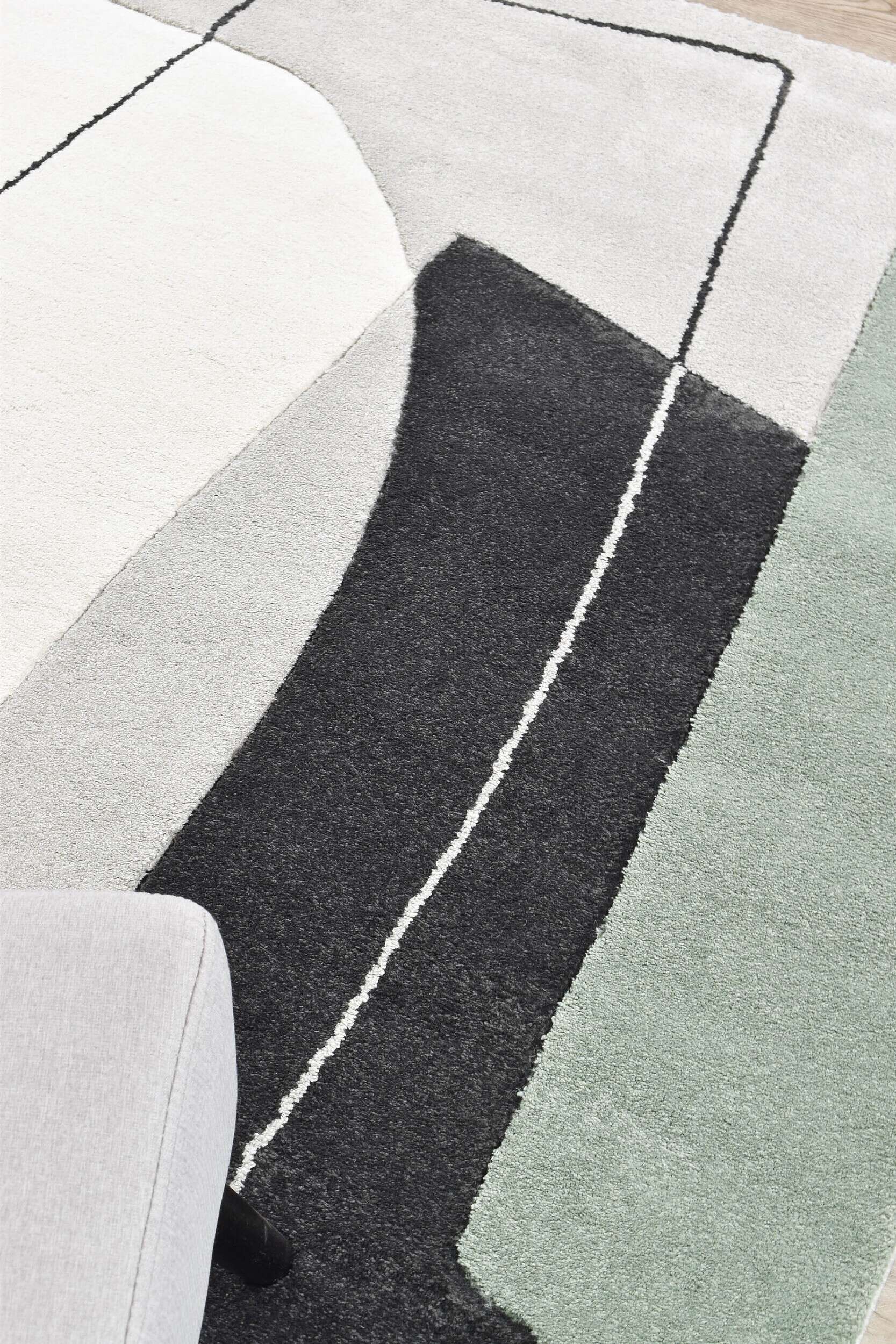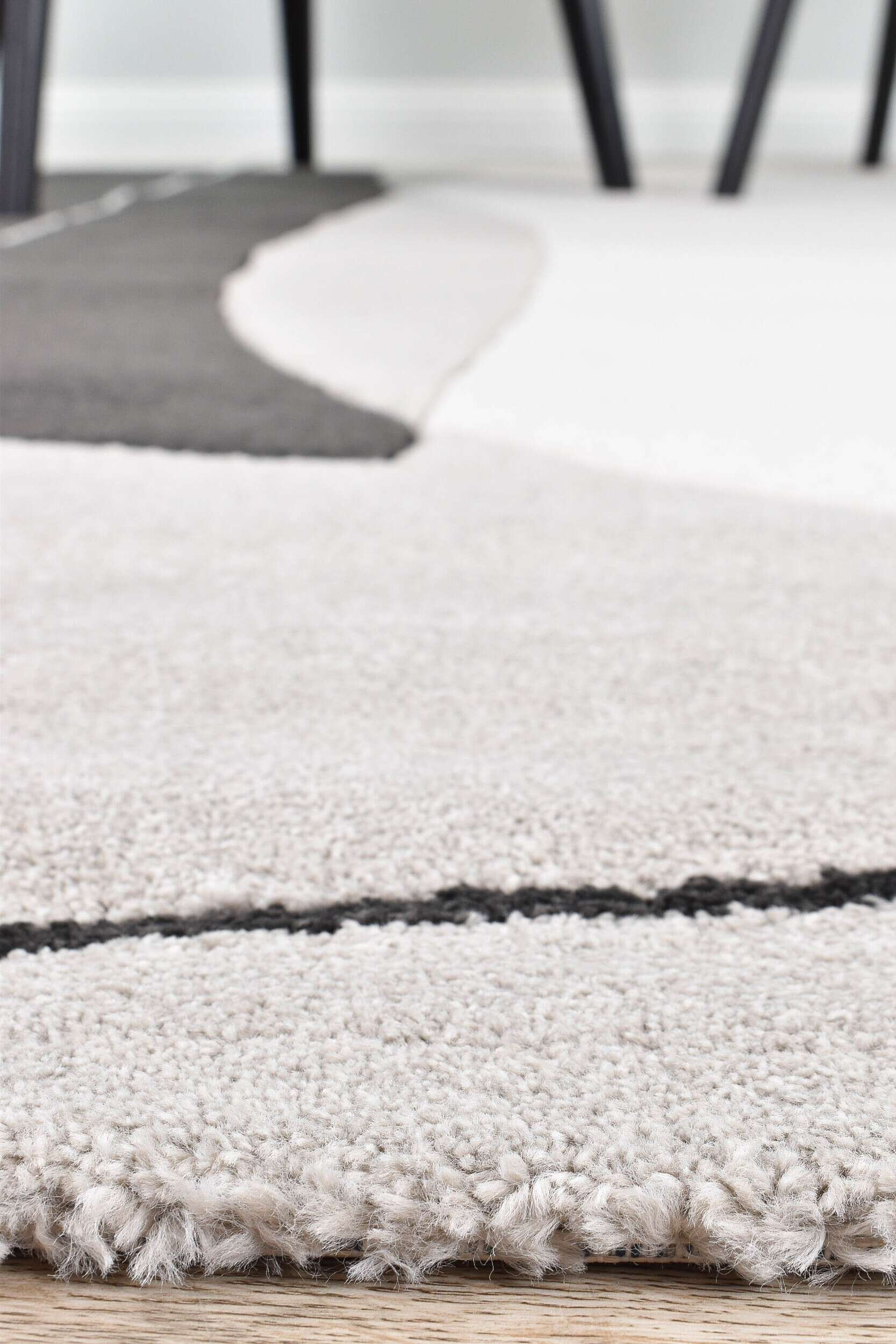 Smooth, carved rugs in graphic, trend-forward designs, combining neutral