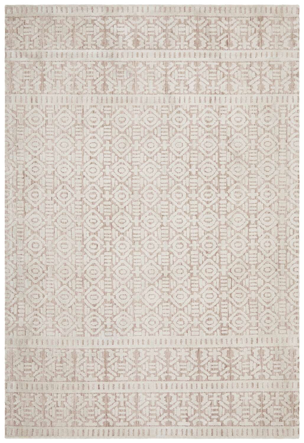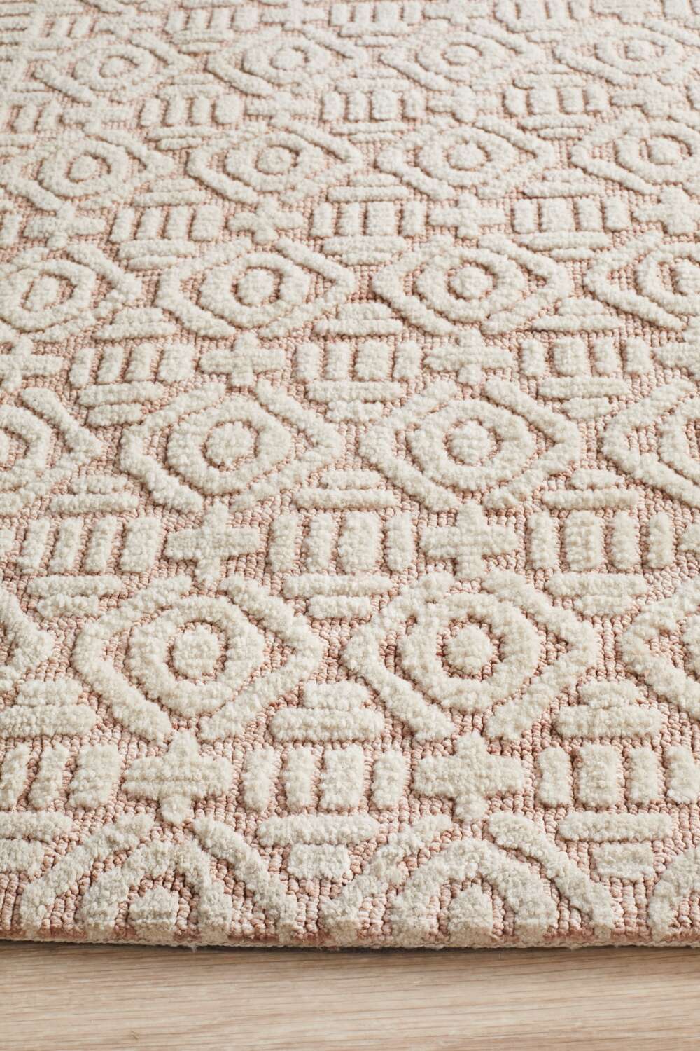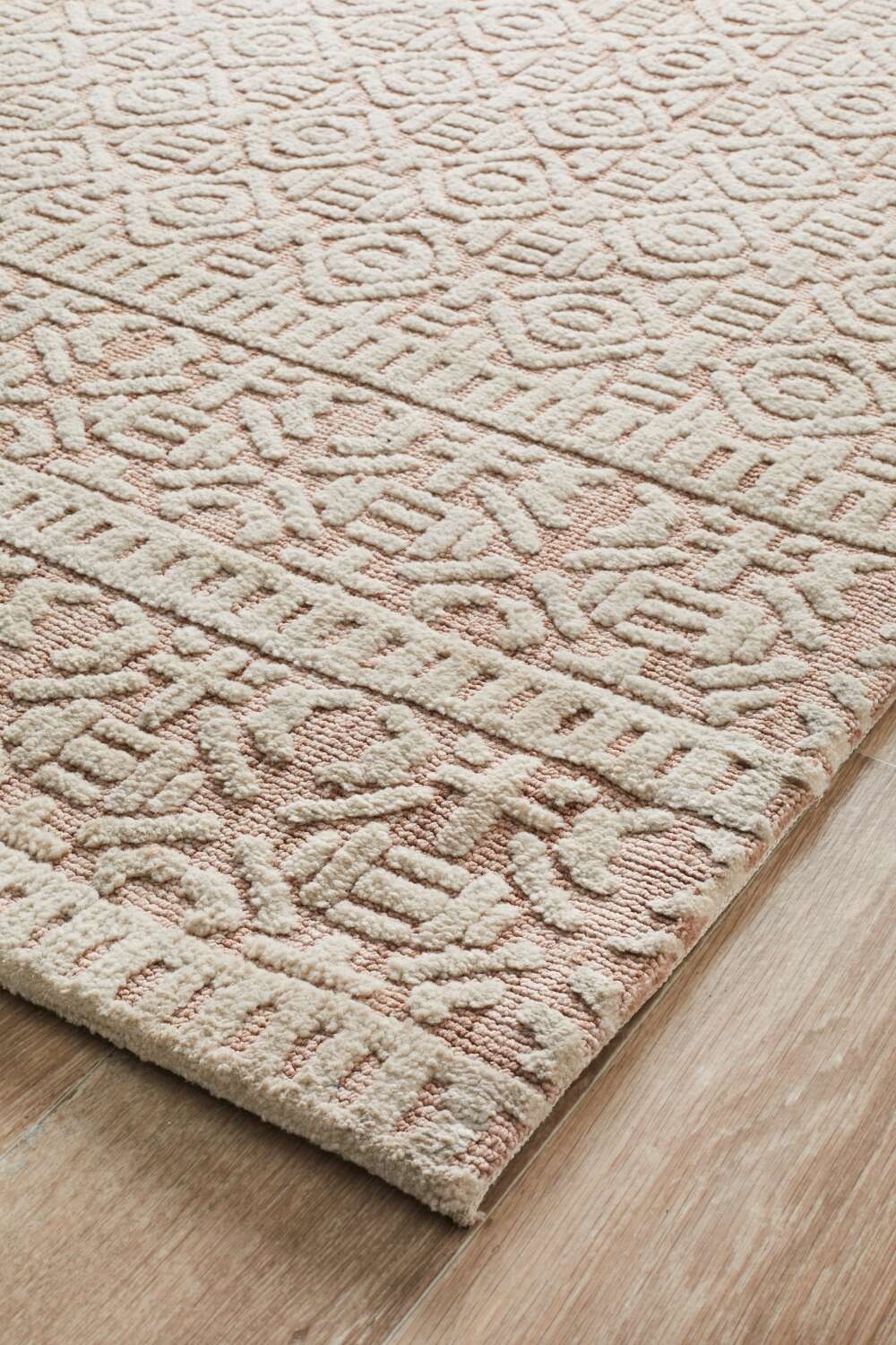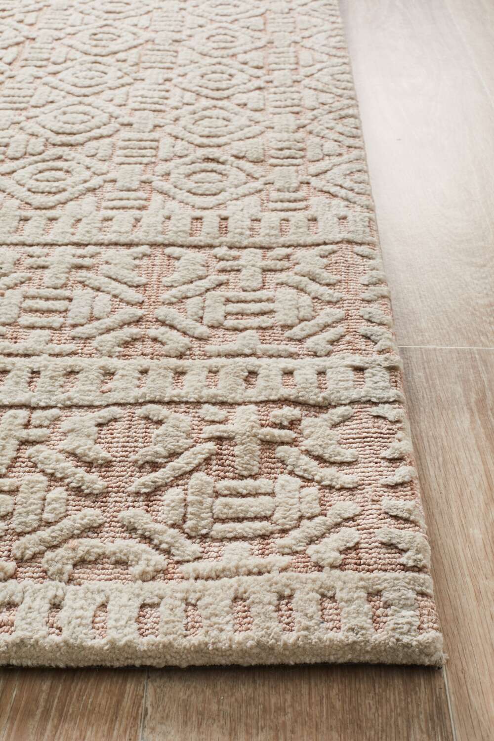 A rich and luscious 15 mm pile from the world-renowned Lich Collection. The Lich Gloria presents geometric figures stroked with white foggy hue on peach background highlighting its rustic and Moroccan feel, duly constructed expertly in India using the finest microfibre polyester. One can definitely assure himself of durability without sacrificing the quality and gentleness of this one of a kind material.