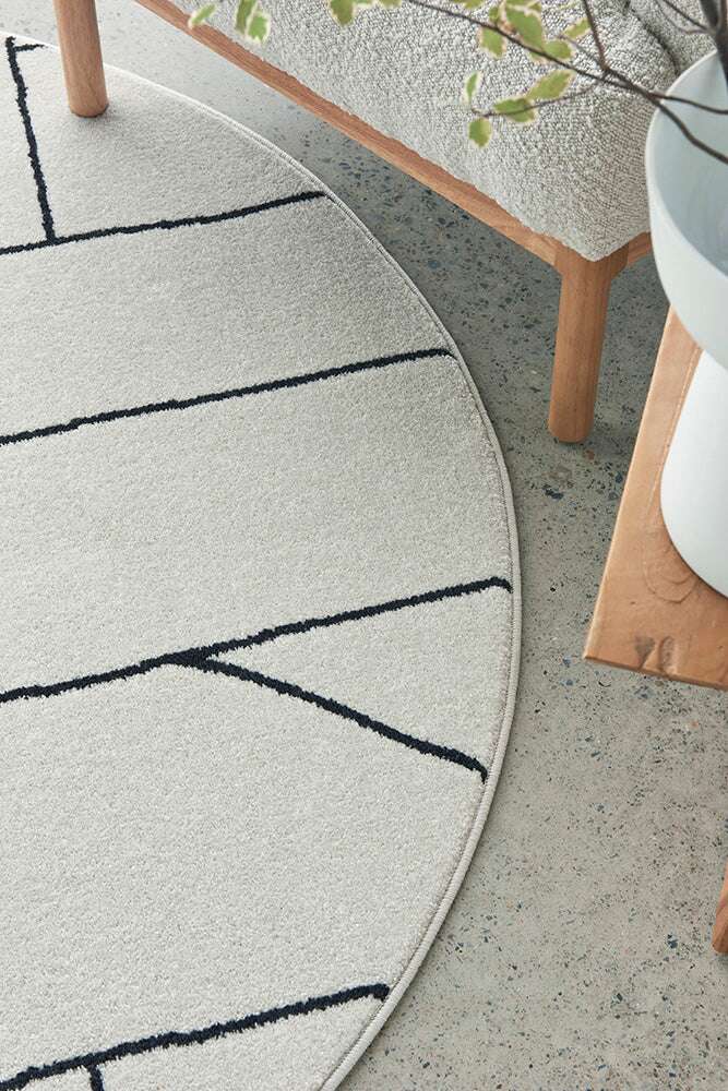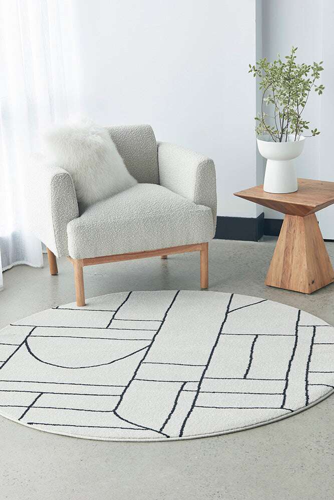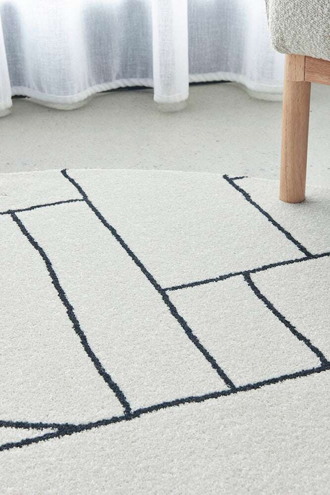 Rich with a modern design fixture the NAHID FLEUR is a must-have rug for any living room setting. Power loomed in Turkey, this rug features an off-white background underneath a black geometric pattern and a 10 mm pile, soft texture finish to make it a diverse addition to any living space. The design features a range of geometrical shapes, however, the accompanying curved lines create a balanced pattern.