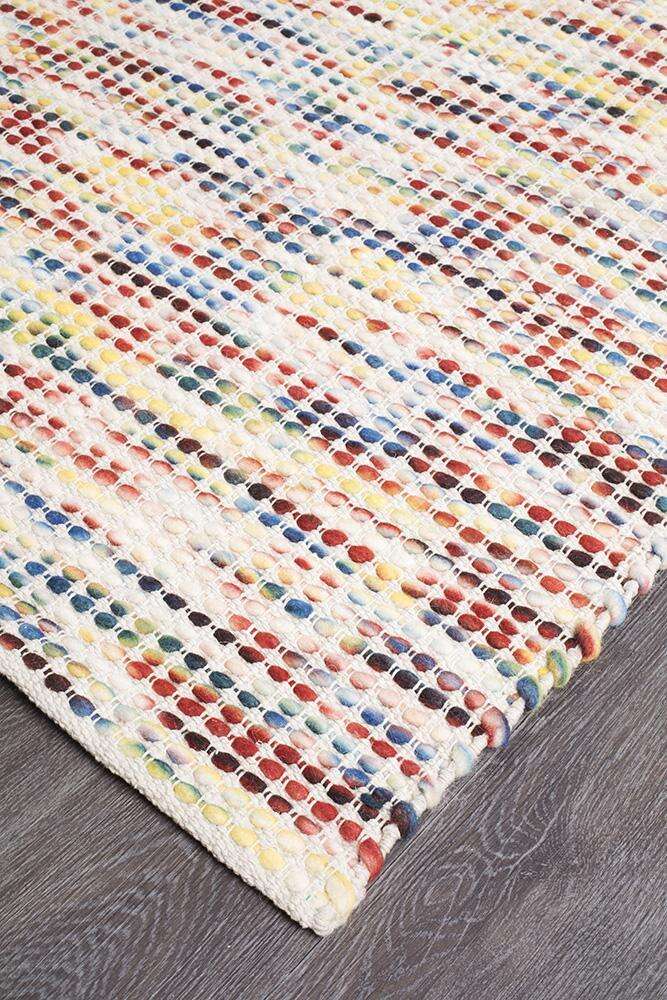 Made in India using the finest wool, the Primrosenavian Multi rug range is skillfully hand made and underwent a careful flat weave construction process to stand the test of time. This pile is inspired by the popular Scandinavian look and features an array of multi colors combined to create excellent output. This stunning piece is perfect to place on any floor type and location in your room or in your home reflecting the Nomadic lifestyle.
