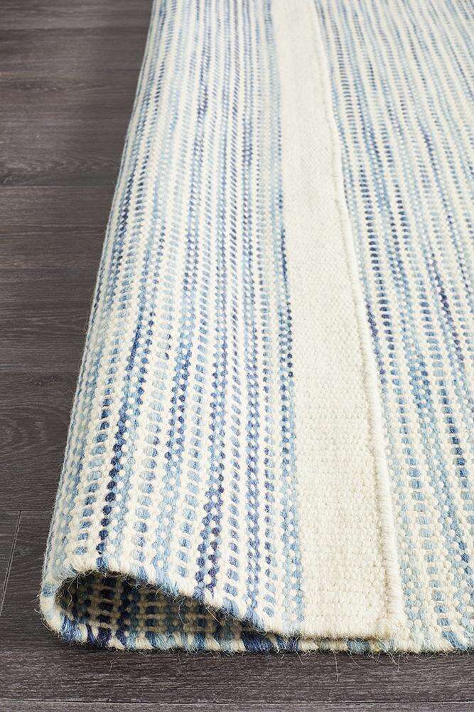 Two words, luxury and elegance burst out of the Primrosenavian Blue Rug. This rug has been hand made and hand woven from beautiful natural wool with the experts in India. This has been designed with modern and Nomadic style in mind, it has been carefully constructed to stand the test of time without sacrificing the quality and beauty of this piece. The surface of the rug is described as a flatweave, feeling light and smooth on the feet.