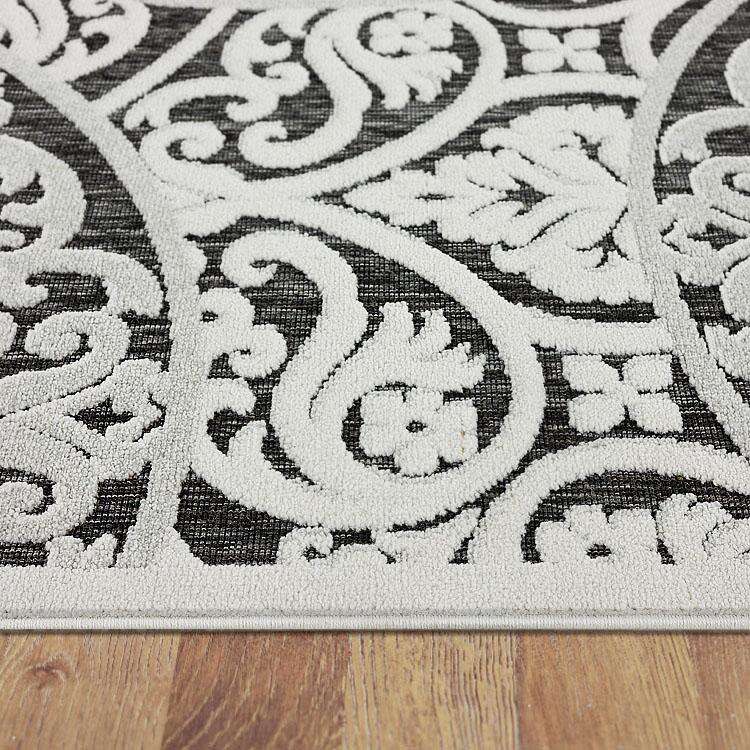 This exquisite collection is highly versatile in that it is suitable for both indoor and outdoor use under covered areas. It has a flat-weave base embellished with patterns creating the multi-textured pile. This collection is machine-knotted from heat-set polypropylene and polyester and has anti-static properties contained within its non-shedding pile.